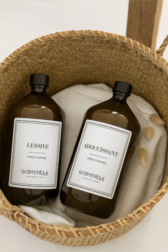 Prenez soin de votre linge tout en respectant la planète grâce à notre pack complet lessive et adoucissant « Fleur de coton & Vanille douce ». La lessive nettoie efficacement vos vêtements tout en préservant les fibres, tandis que l’adoucissant apporte douceur et parfum délicat. Ensemble, ils garantissent un linge propre, souple et délicatement parfumé, sans agents chimiques agressifs.